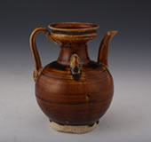 • 宋酱釉双系盘口瓷执壶